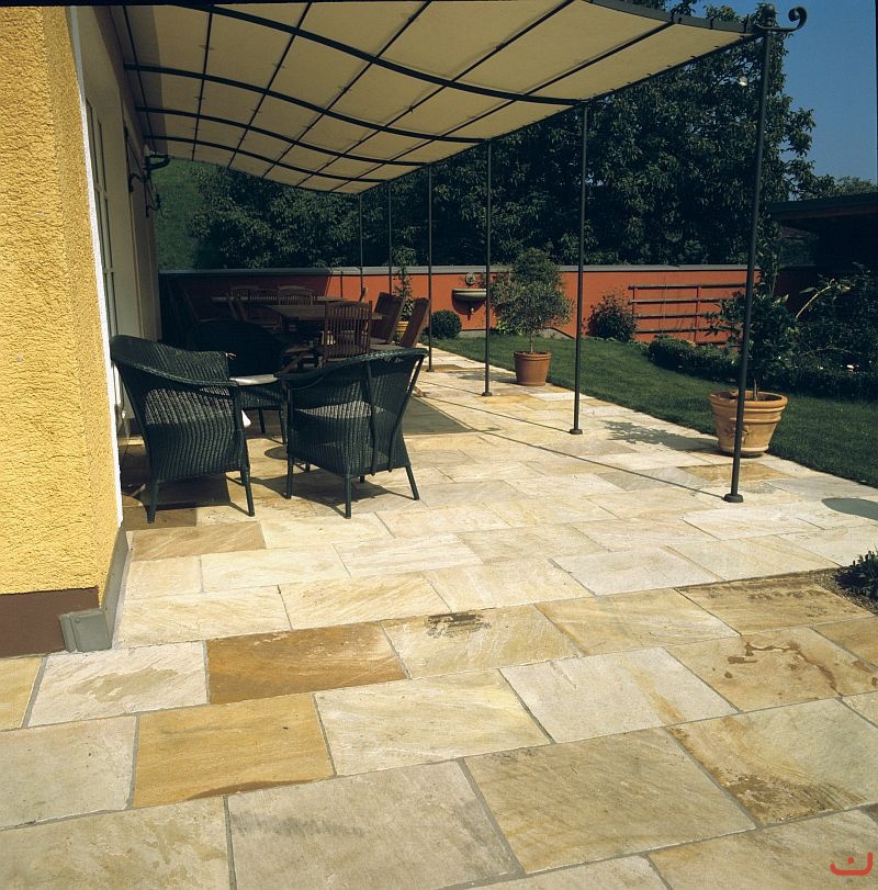 Material: Sandstein hellgelb-mint; Aussenanwendungen; Formatplatten behauen (9812)